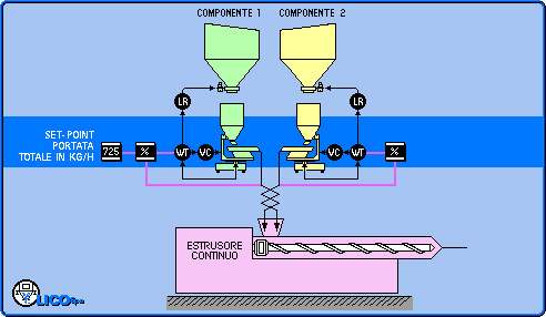 dall'impianto di dosaggio ponderale LICO con un flusso di materie prime a